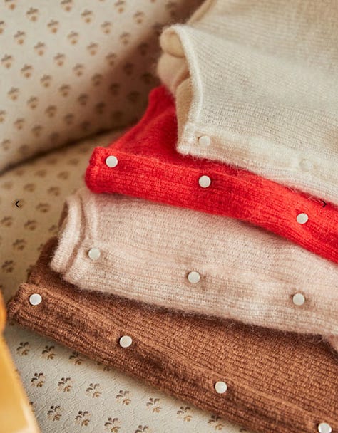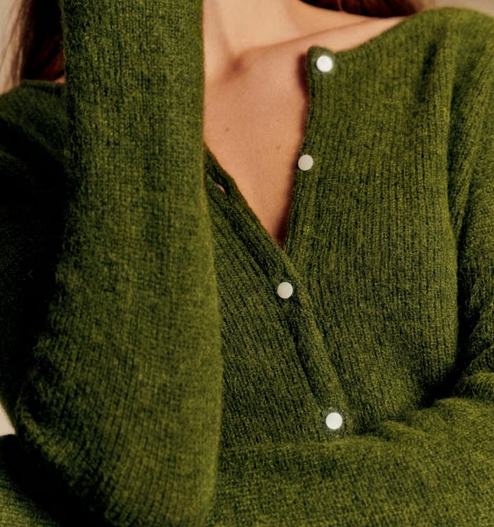So - the Cardigan, at this point, cost per wear, has paid for itself dozens of times over. Correction - THEY have paid for themselves. I have several colours now because its just TOO GOOD. And ALERT ALERT - they have just restocked the much coveted ‘perfect green’ and introduced a maroon/burgundy - both of which I have now ordered.